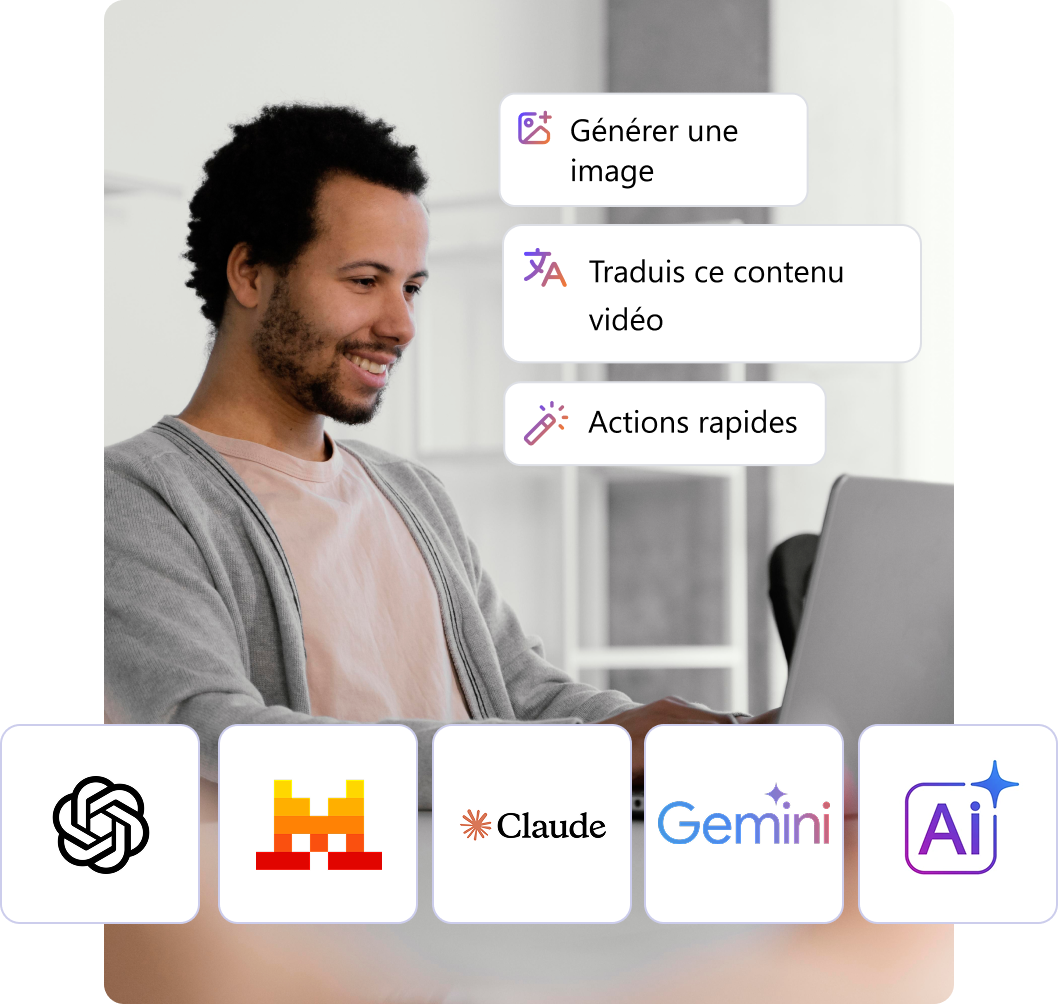 - Créer du contenu texte, image et présentation avec l’aide de l’IA.