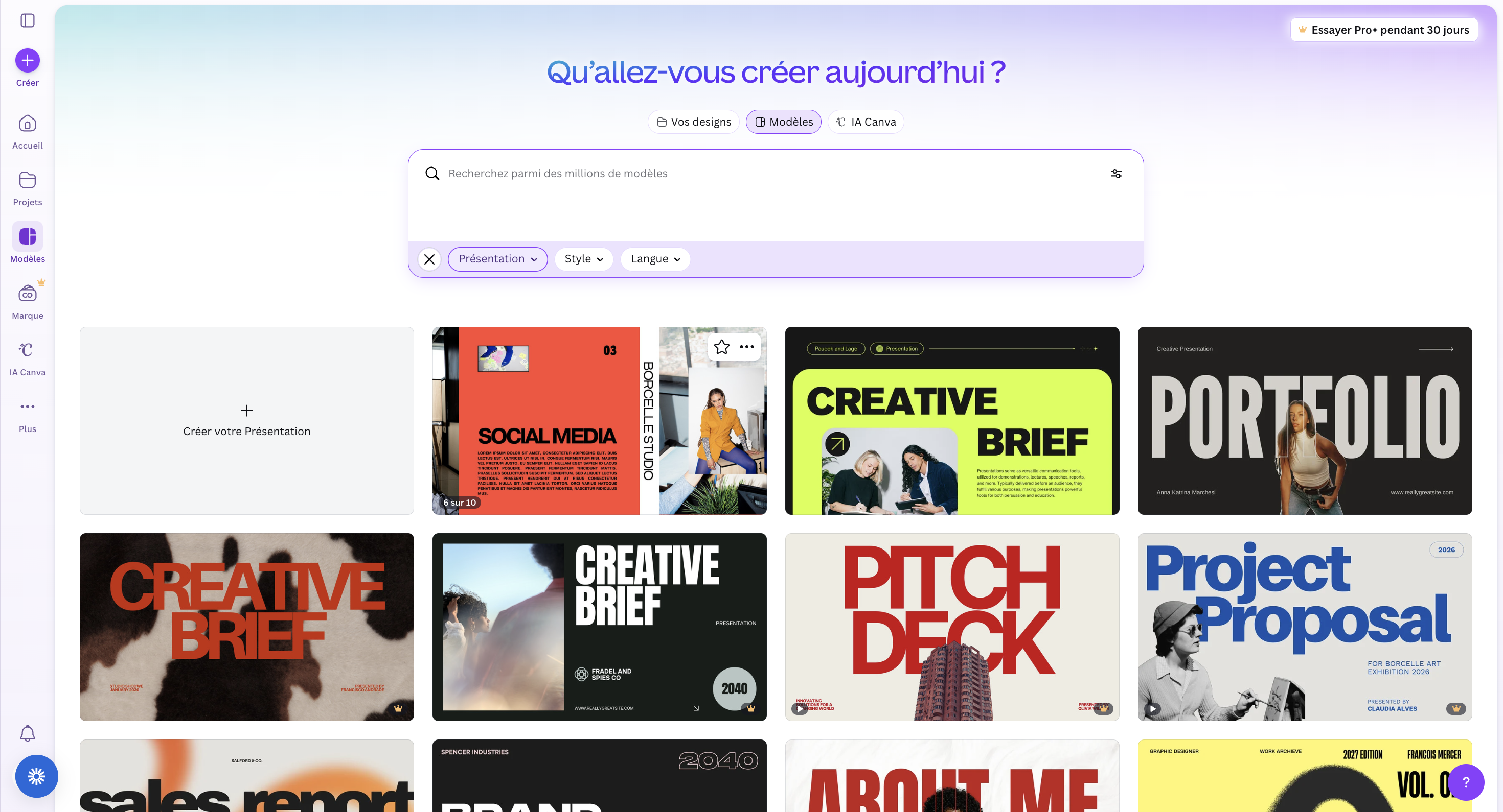 Si vous souhaitez avancer rapidement, le plus simple consiste à choisir et adapter un template Canva.