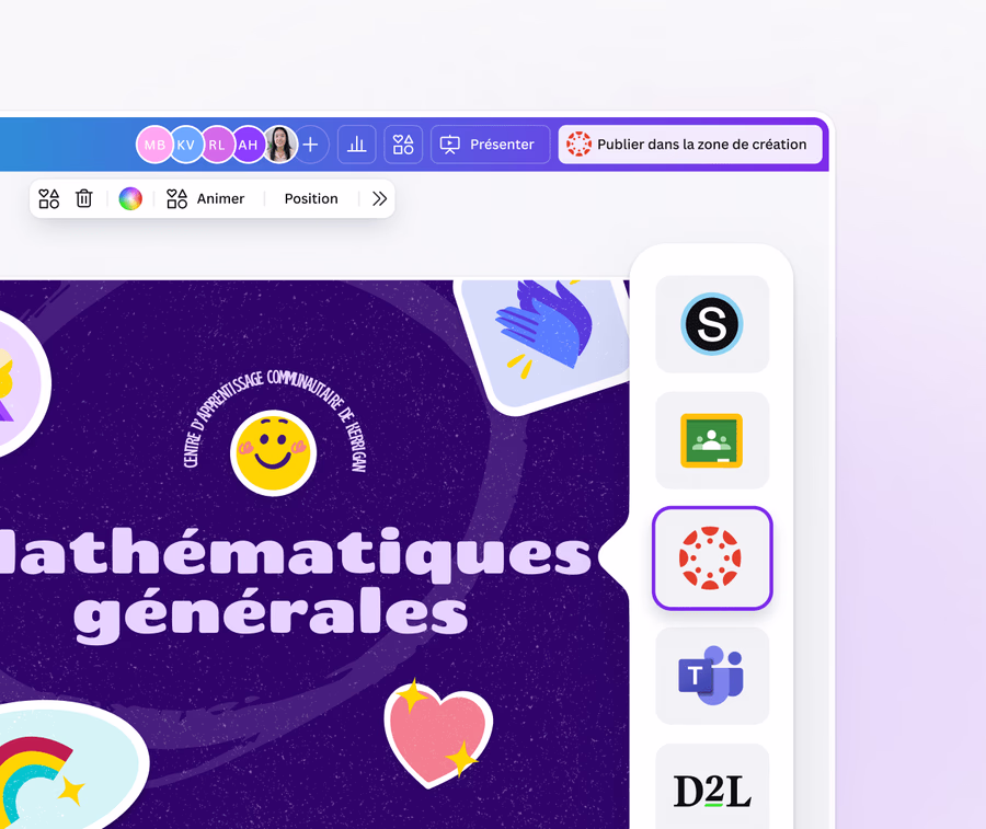 - Bibliothèque intégrée d’images, vidéos, icônes, illustrations